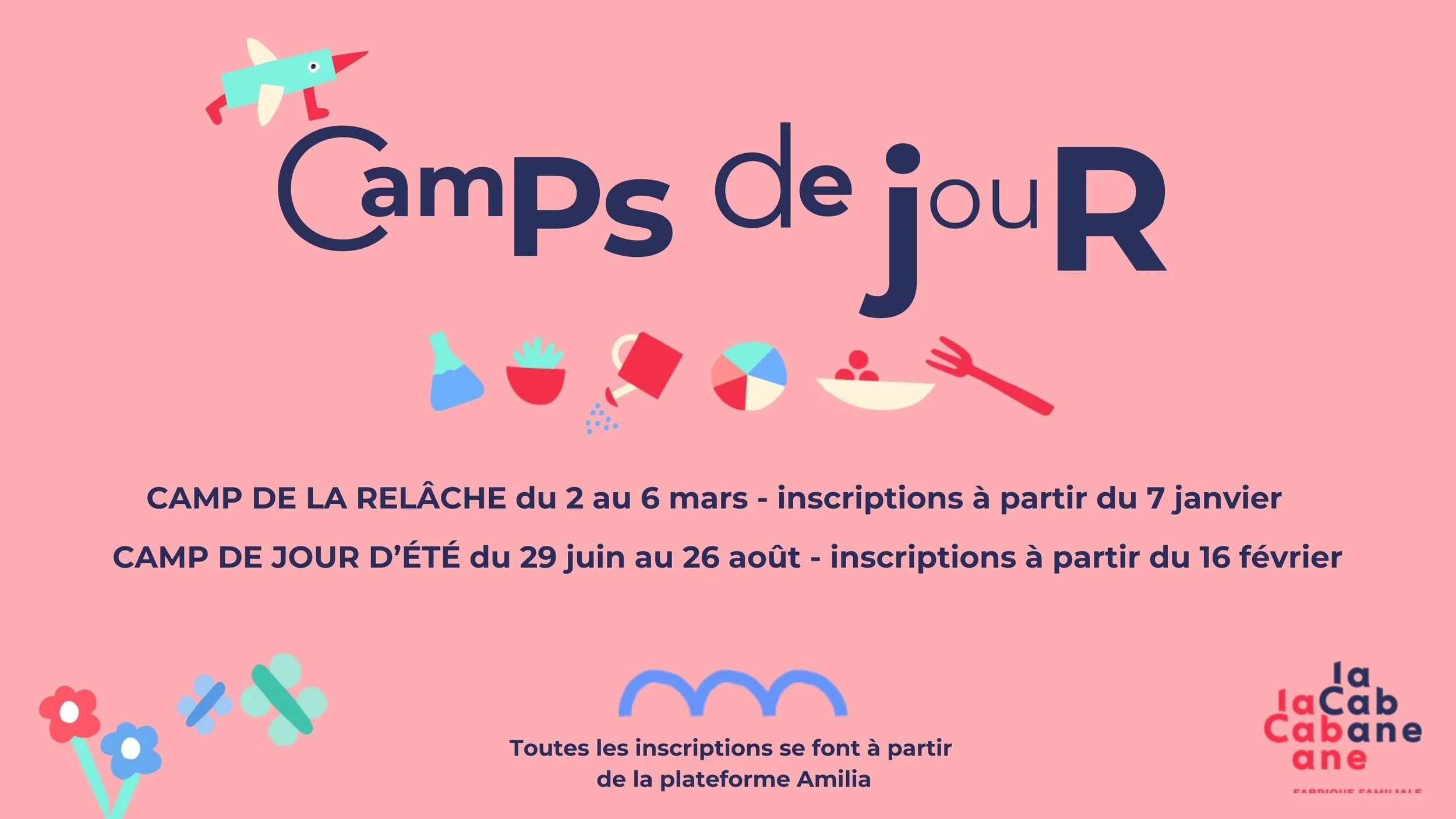 Neuf semaines de camps inspirées par l’approche de La Cabane. Une semaine de camp est offerte à la relâche scolaire et huit autres à l’été.